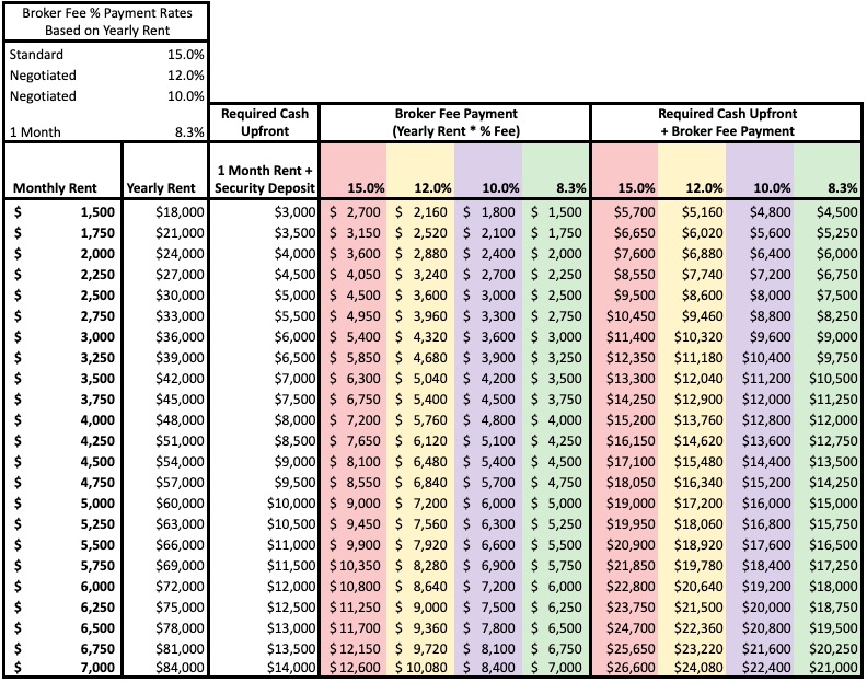 Matrix Of The Average Broker Fees In NYC For Rentals Transparentcity Blog
