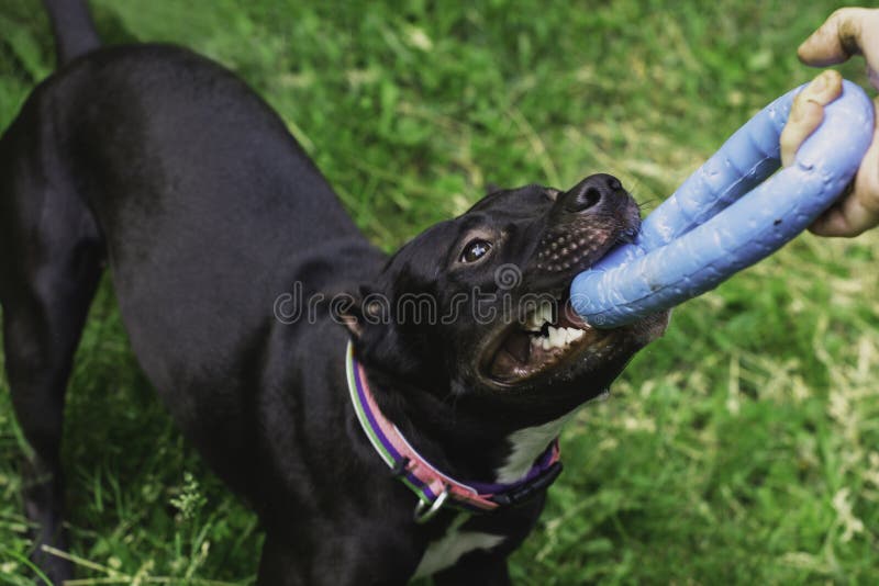 Dog Pulls Toy. Staffordshire Terrier Dog with Puller Toy in Teeth Stock Why Do Dogs Like To Pull On Toys Get a good tug toy. Playing tug with your dog can. The ideal dog tug toy is designed so that it is as easy to grip with your hands as it is by your dog’s mouth. by understanding why dogs are so drawn to their toys and implementing these tips, you can ensure your furry friend is getting the. Why Do Dogs Like To Pull On Toys.