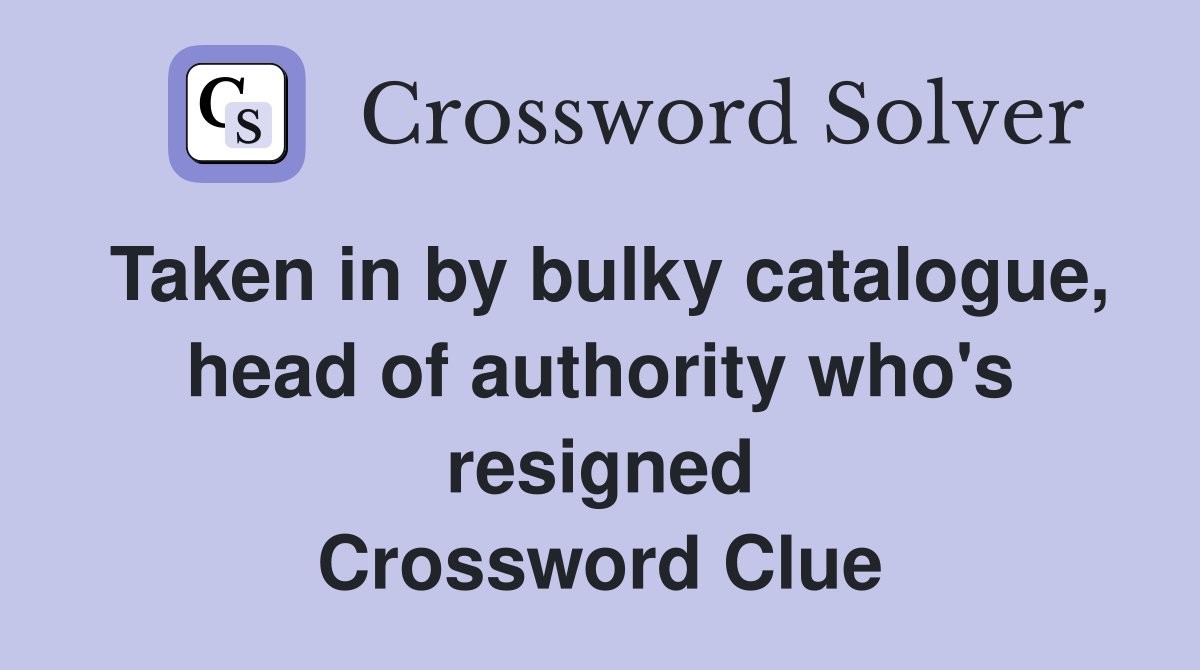 Taken in by bulky catalogue, head of authority who's resigned Crossword Clue Answers