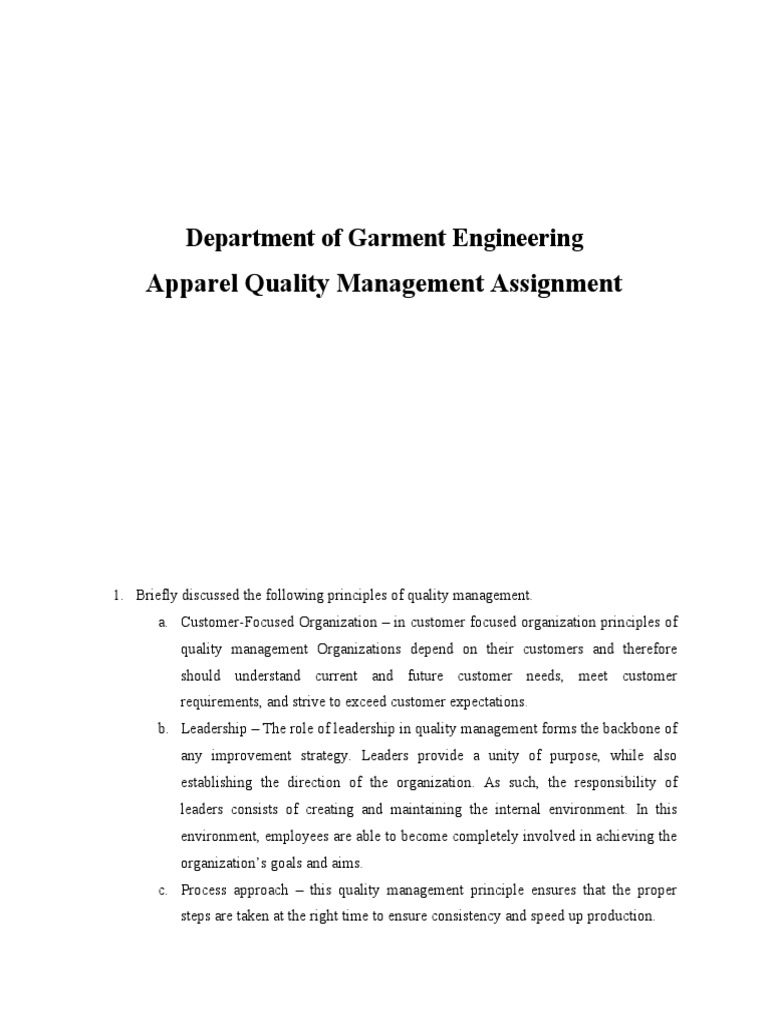 Apparel Quality Management PDF Quality (Business) Quality