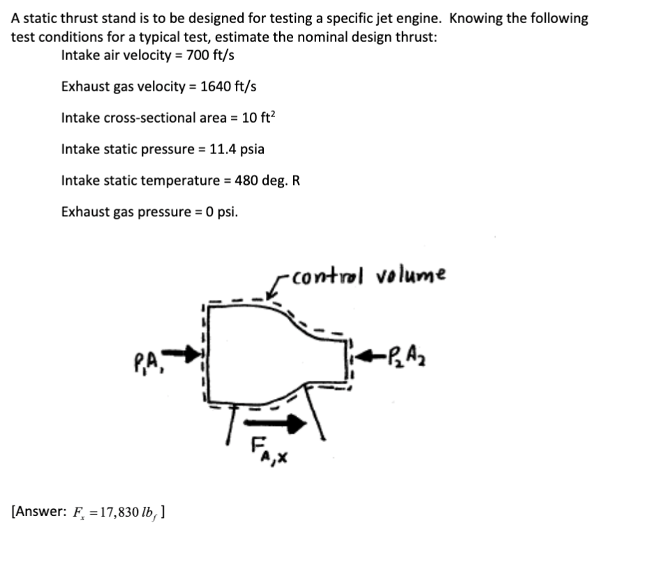 Solved A static thrust stand is to be designed for testing a Thrust Equation Jet Engine — on this slide, we have collected all of the equations necessary to calculate the thrust of a rocket engine. — our thrust equation indicates that net thrust equals gross thrust minus ram drag. — on this slide we have gathered together all of the equations necessary to compute the theoretical thrust for a turbojet engine. If. Thrust Equation Jet Engine.