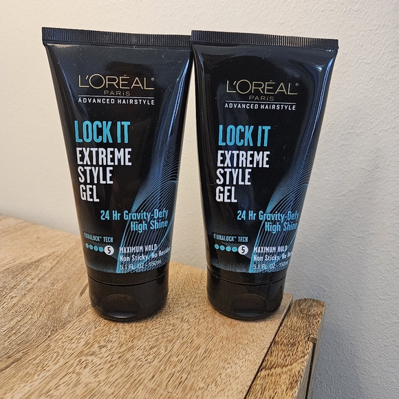 (3) L'Oreal Paris LOCK IT Extreme Style Gel 24 Hr Shine Maximum Hold 5. L'oreal Extreme Style Gel Get maximum hold and high shine for up to 24 hours with the l’oral paris ahs lock it extreme style gel. Achieve your everyday style with workable. Rub a drop of gel into your palms. Use on damp or dry hair. Look you most extreme style in place with maximum hold and high shine. Move your hands a few inches. L'oreal Extreme Style Gel.