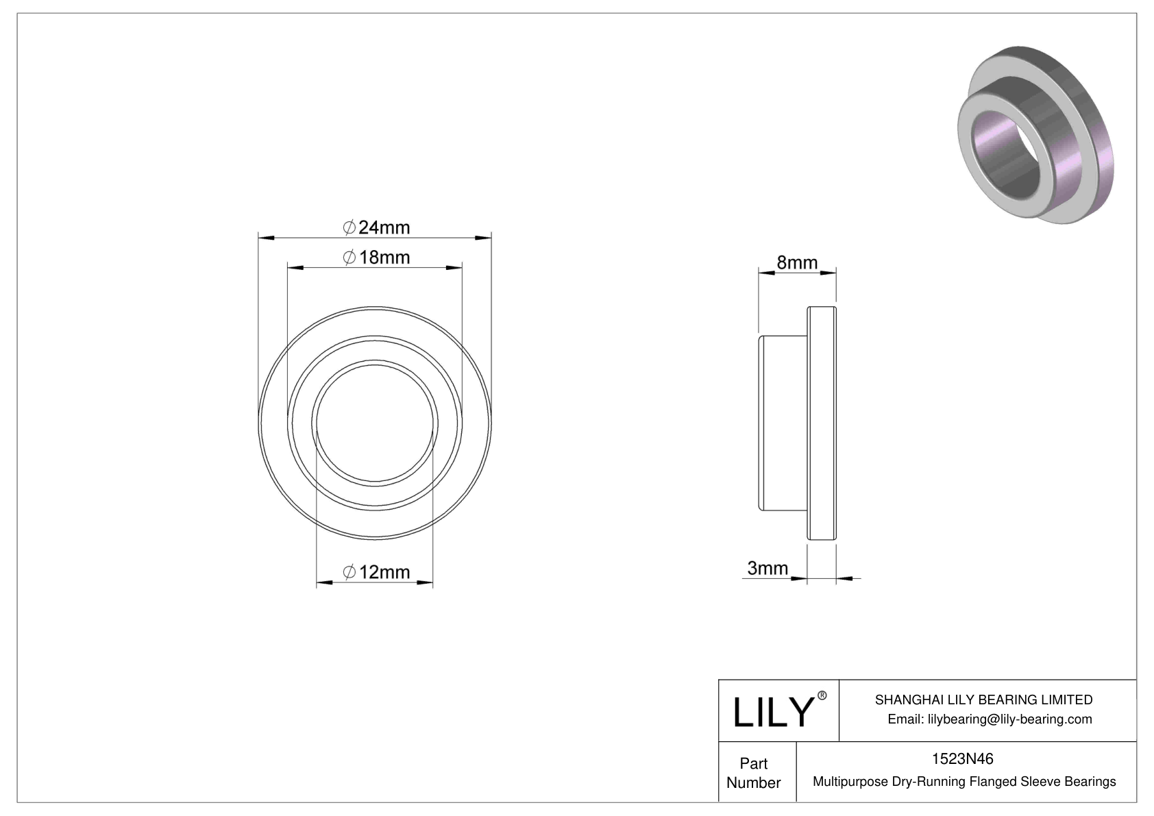 1523N46 Multipurpose DryRunning Flanged Sleeve Bearings LILY Bearing