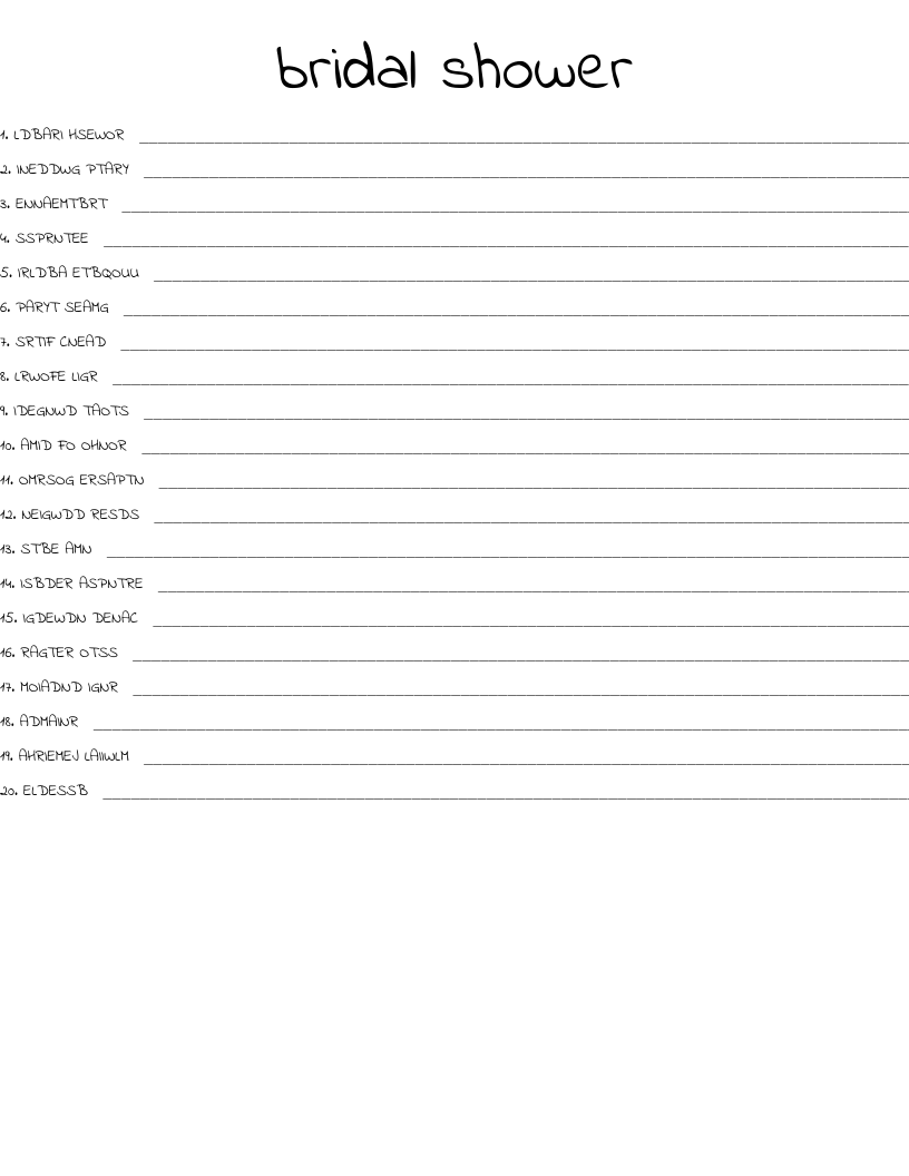 bridal shower Word Scramble WordMint
