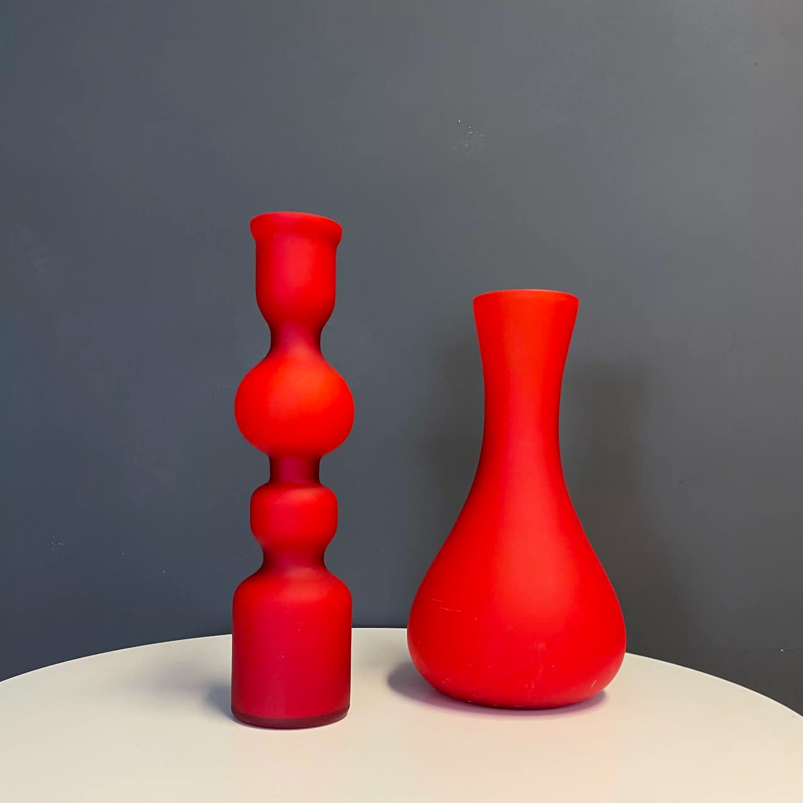 Set of 2 vintage red Murano glass vases by Carlo Moretti. 66 Elements