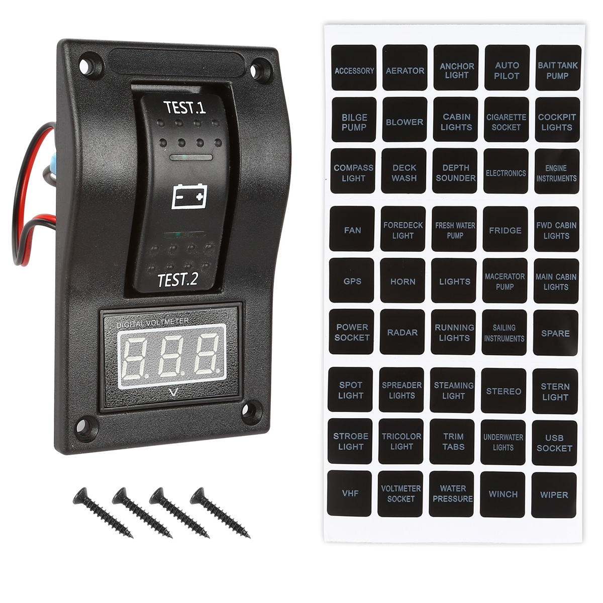LTC 12V RV Marine Boat Voltmeter LED Dual Battery Test Panel Rocker