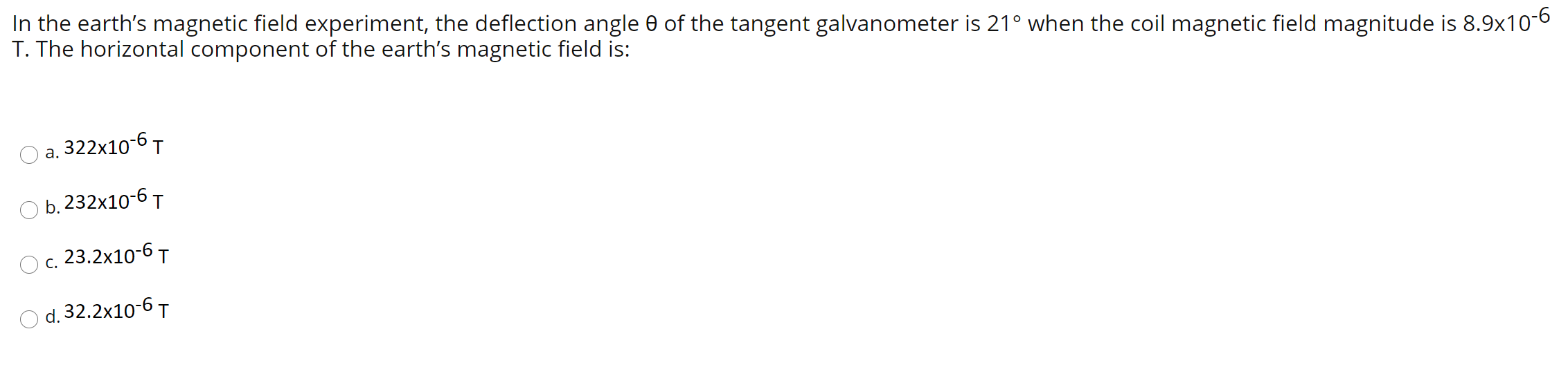 Solved In the earth's field experiment, the