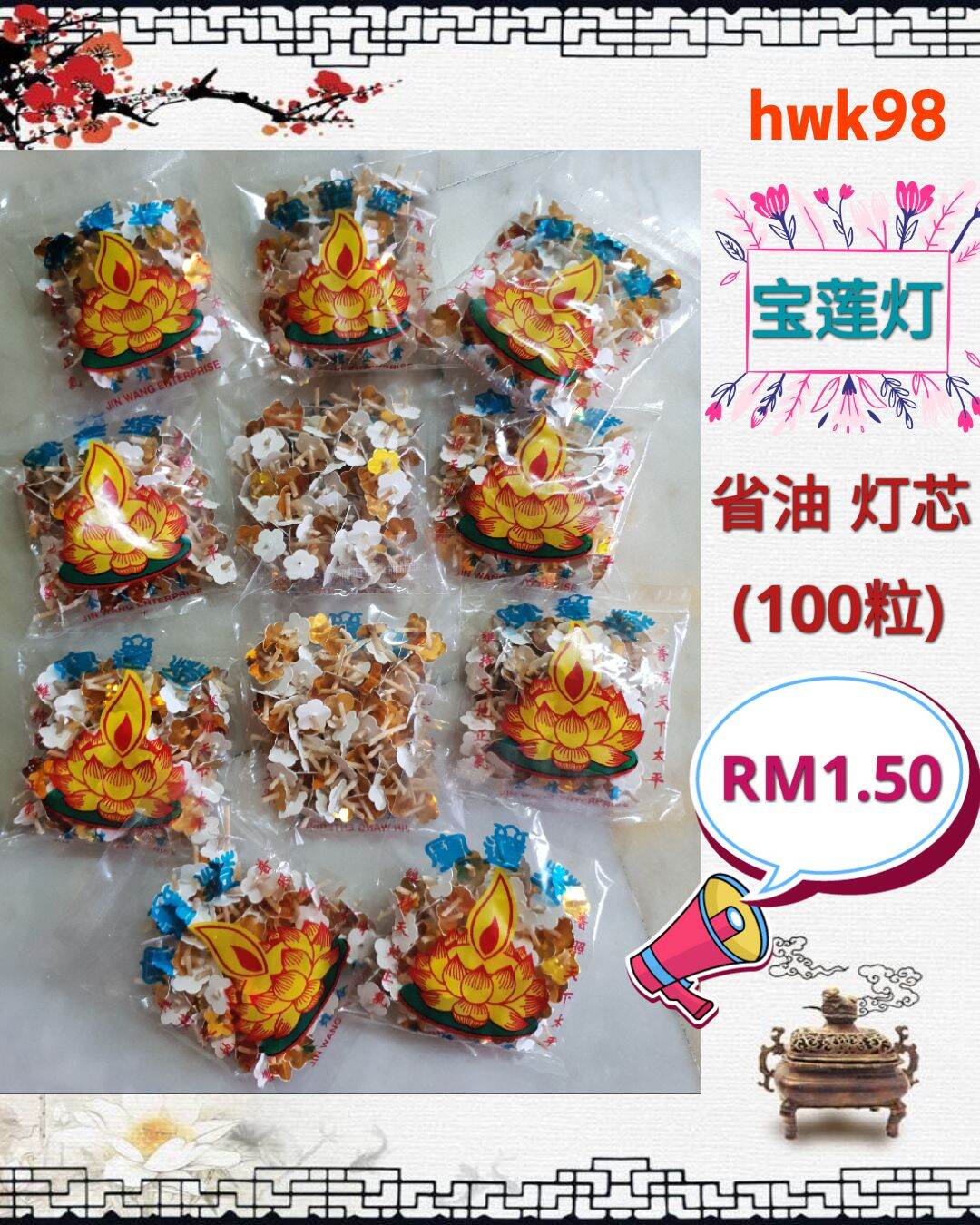 Hwk98 省油灯芯 宝莲灯 拜神花型灯芯 Oil Lamp Lead(Saving Oil) Lazada
