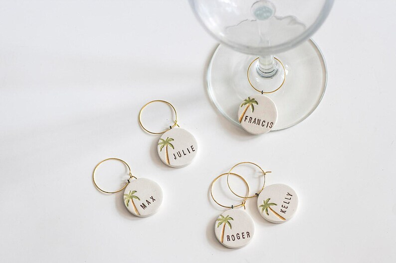Palm Tree Personalized Ceramic Wine Glass Charms Wedding Etsy