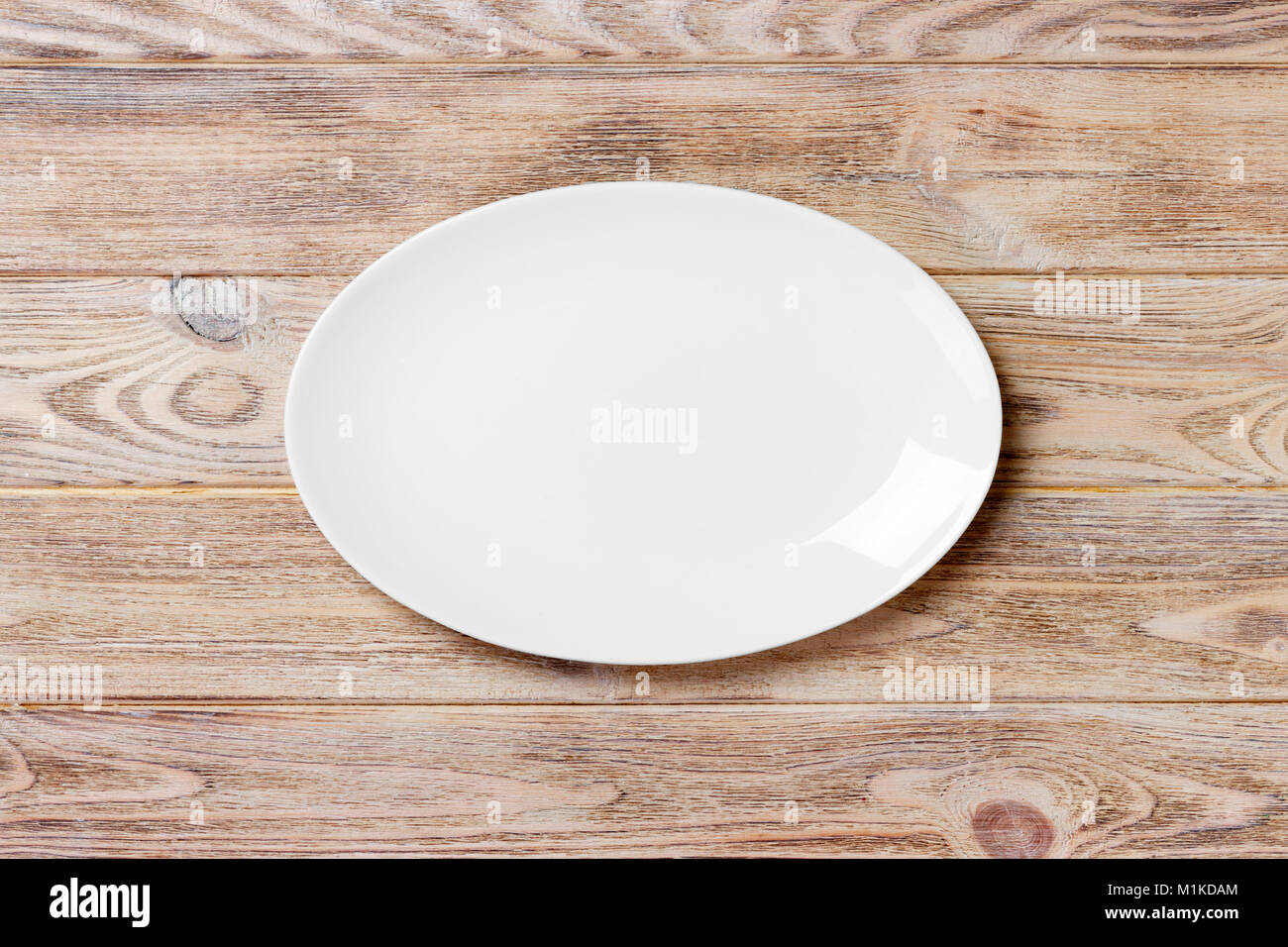 Empty white plate on wooden table. top view Stock Photo Alamy