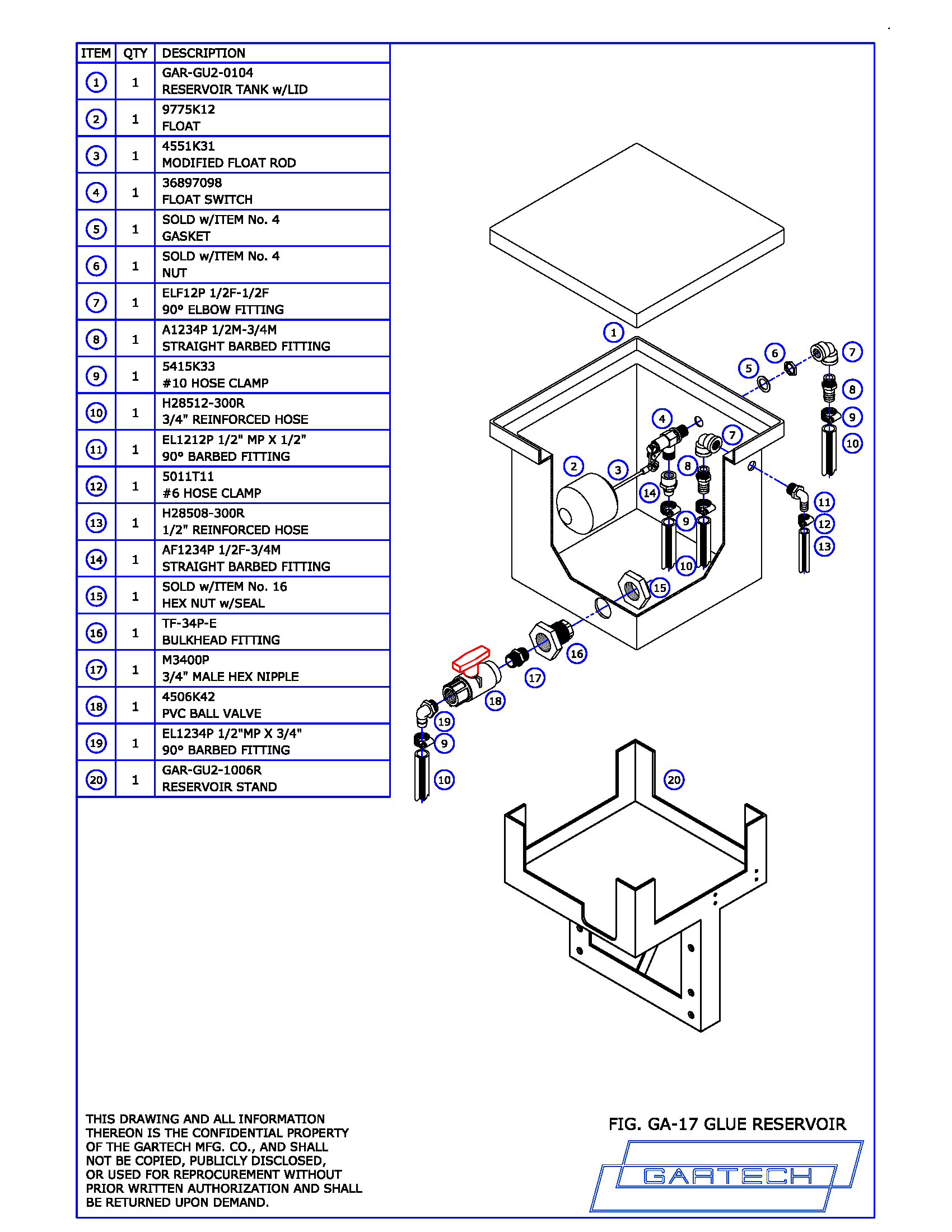 Gartech Glue Reservoir Assembly layout Gartech