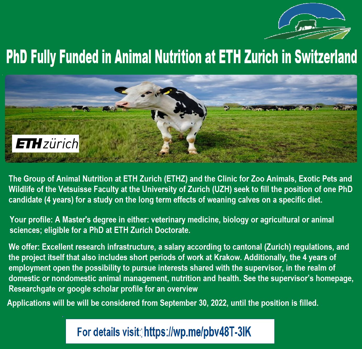 Agristok on Twitter "📌 PhD Fully Funded in Animal Nutrition🐄 at ETH