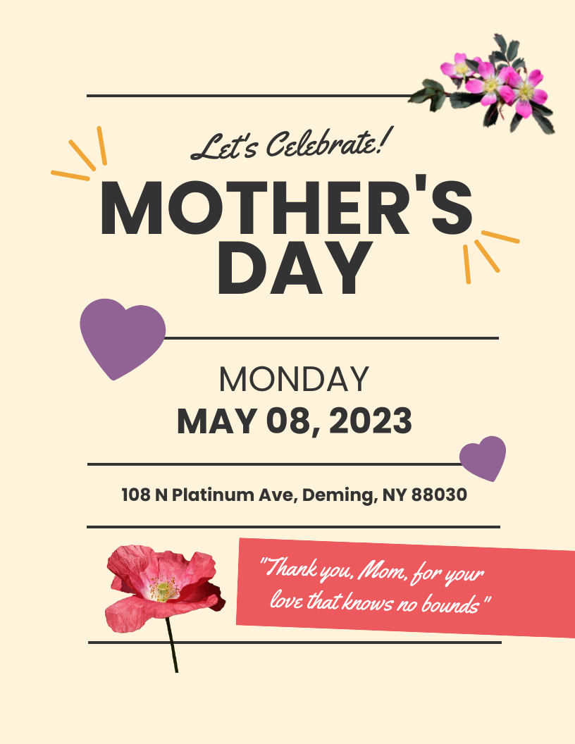 48+ Mothers Day Flyer Templates Free PSD, Ai Word, Formats Mother's Day Flyer Ideas Choose from 30,180+ free mother’s day. explore professionally designed mothers day templates you can customize and share easily from canva. rock your design to the perfect tune with free mother's day flyer templates for your special occasions. rock your design to the perfect tune with free mothers day flyer templates for your special occasions. skip to. Mother's Day Flyer Ideas.