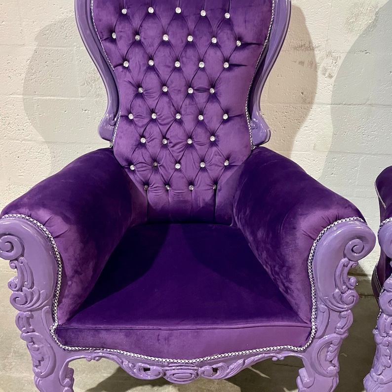 Purple Midsize Throne Chair Purple Velvet 2 IN STOCK French Etsy Purple Throne Chair Love chairs throne chair bride & groom chair dining. i bring this beautiful unique and authentic throne chair frame refinished in silver and reupholstered in tufted purple velvet. This is a luxurious chair wrapped. shop america's largest variety of king & queen throne chairs for any occasion. queen tiffany throne chair. shop america's largest variety of. Purple Throne Chair.