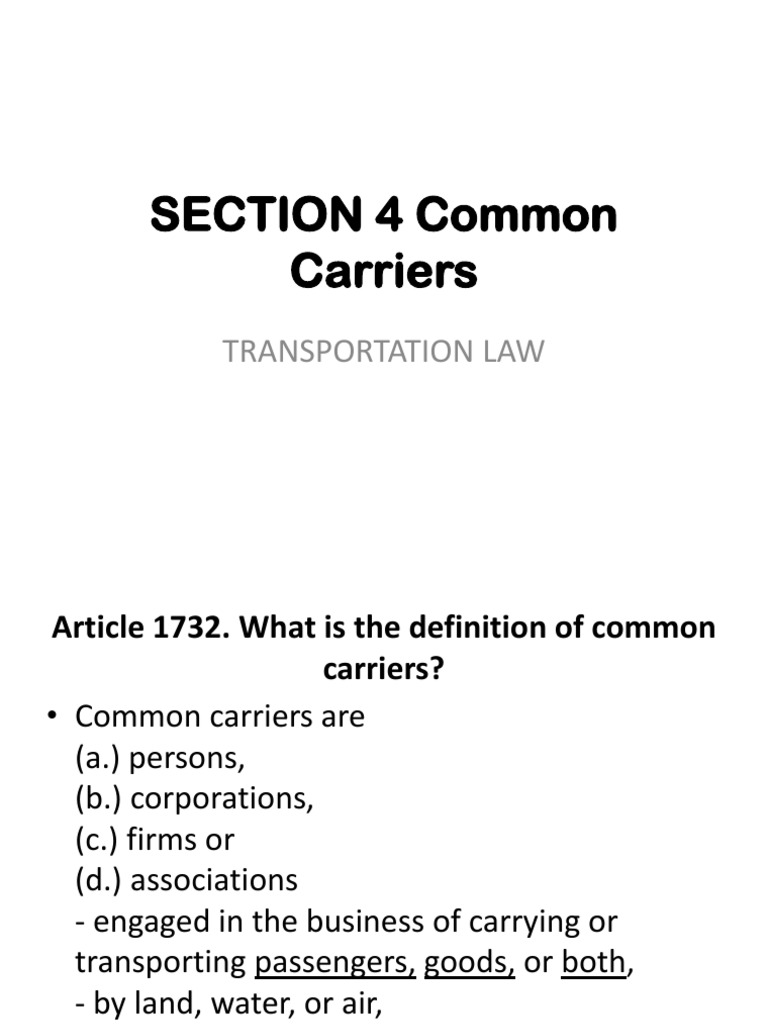 Common Carriers Civil Code PDF Common Carrier Negligence Common Carrier Negligence Defendant owed plaintiff a duty (common carriers must. In order to prove a carrier’s fault in a negligence case, plaintiffs must show: For common carriers, presumption of fault or negligence applies. In case of loss, destruction or deterioration of the goods, common carriers are presumed to have been at fault or to have acted negligently, and the burden of proving. Common Carrier Negligence.