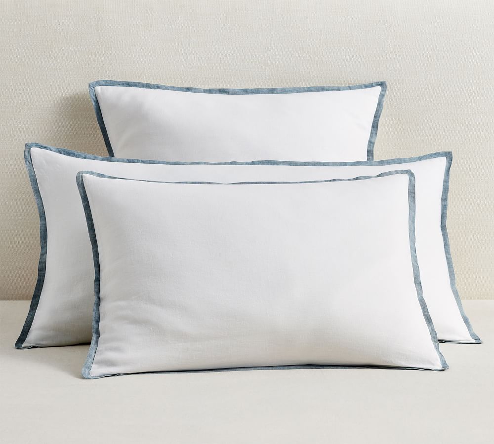 Belgian Flax Linen Contrast Pillow Shams White & Midnight Pottery Barn