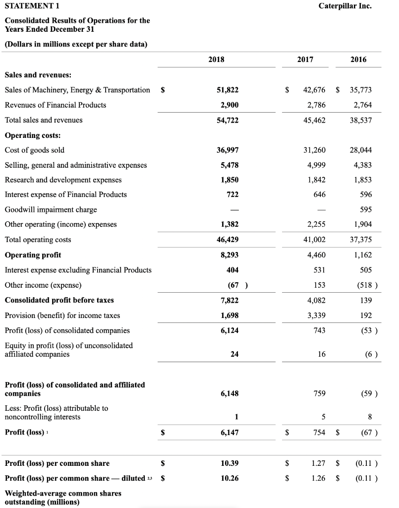 Solved STATEMENT 1 Caterpillar Inc.STATEMENT 3 Caterpillar