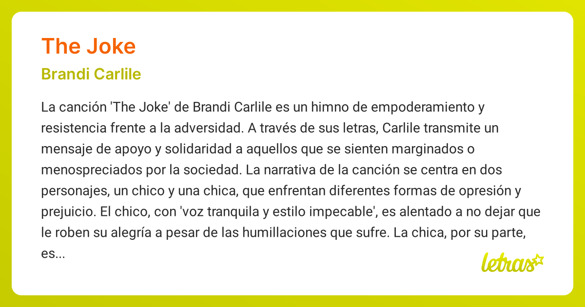 Brandi Carlile The Joke Lyrics The song is a message of hope and resilience for. read the lyrics of the joke, the lead single off of brandi carlile's sixth studio album, by the way, i forgive you. brandi carlile's song the joke is one of the most beautiful tracks written this millennium. I have been to the movies, i've seen how it ends.. Brandi Carlile The Joke Lyrics.