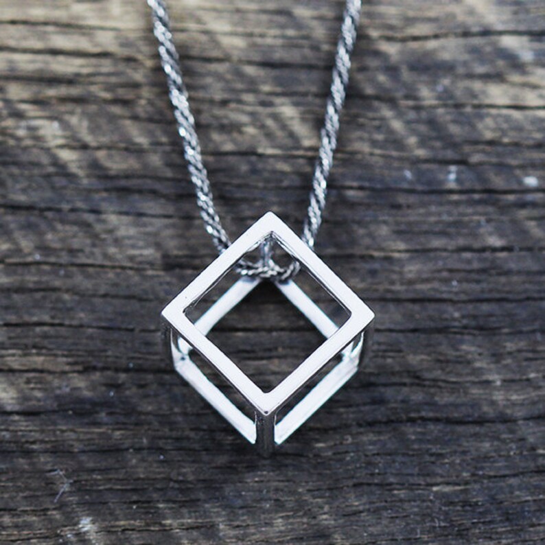 Mens Necklace Cube Box 925 Sterling Silver Oxidized Chain Man Etsy