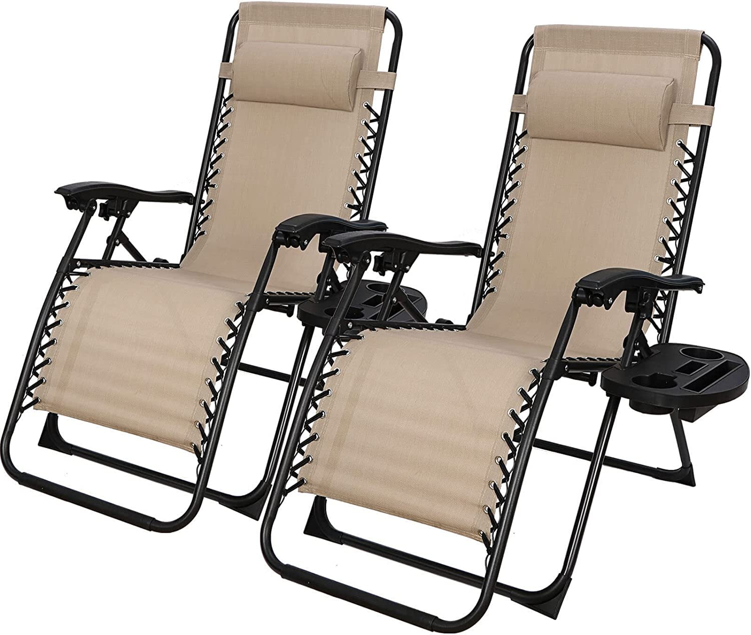 2 of Reclining Lounge Chairs Folding Patio Garden Beach Deck Tray