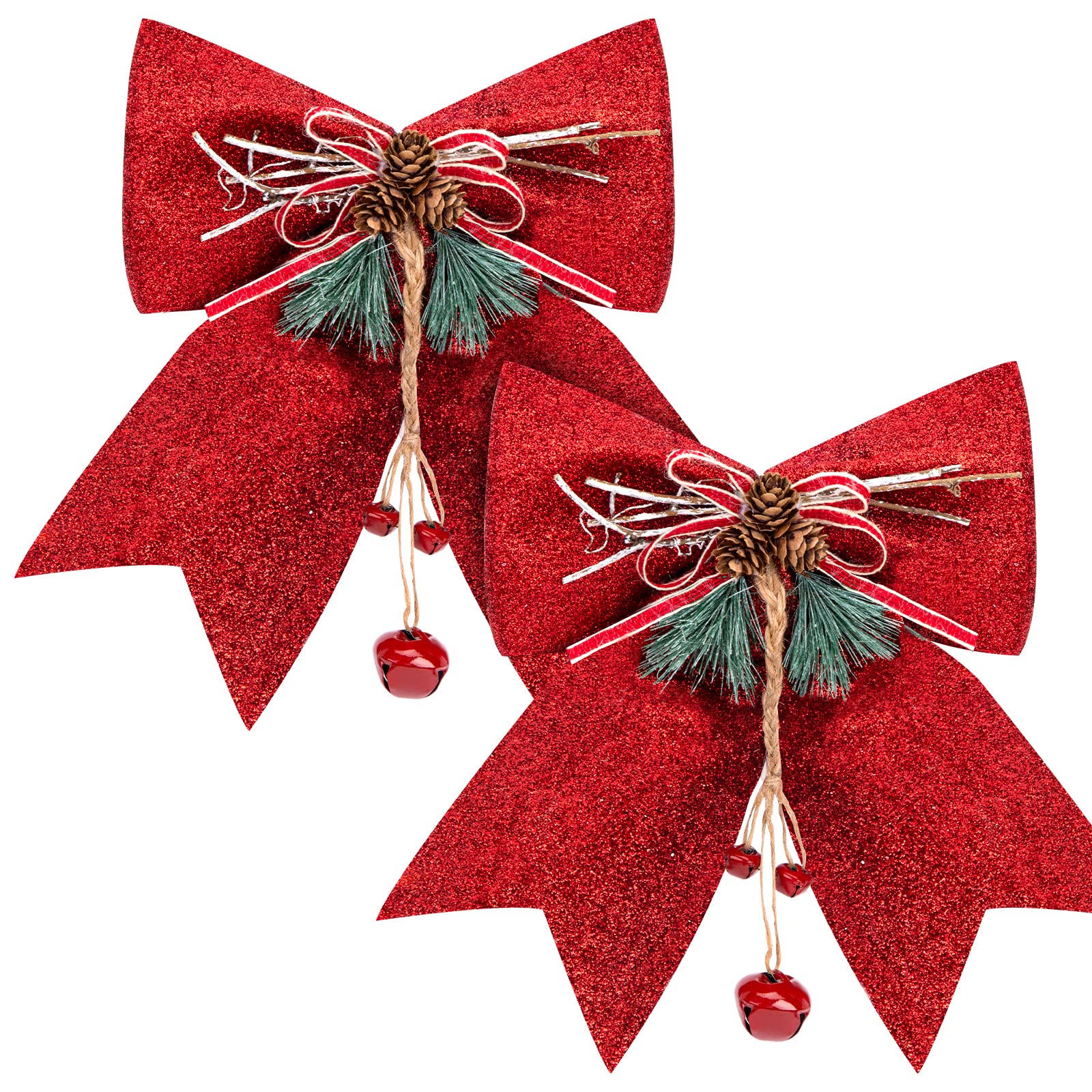 MCPINKY Christmas Red Bows, 2PCS Large Glitter Bows Sparkly Bowknots