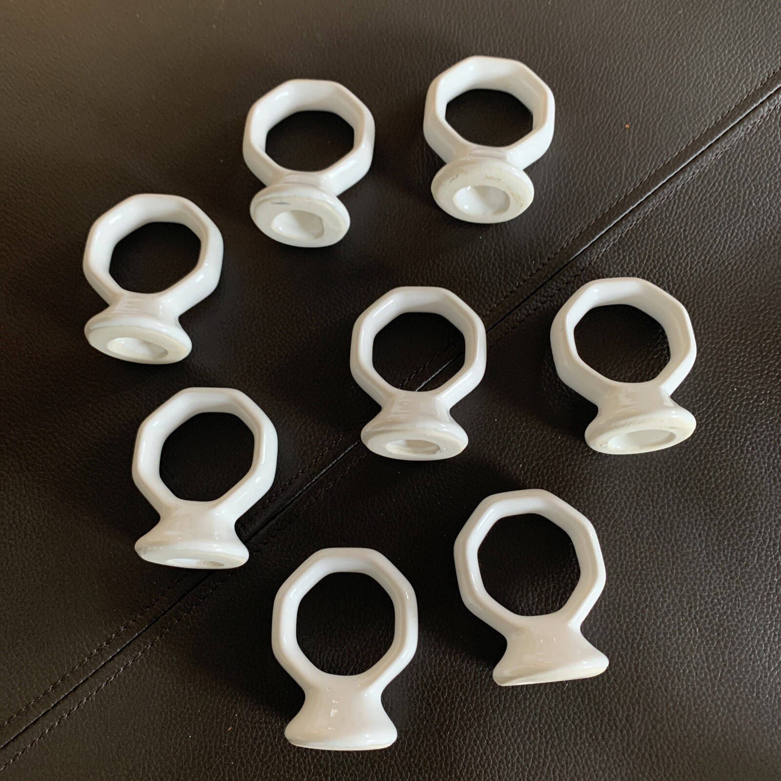 Vintage Set Of 8 Ceramic White Napkin Rings eBay