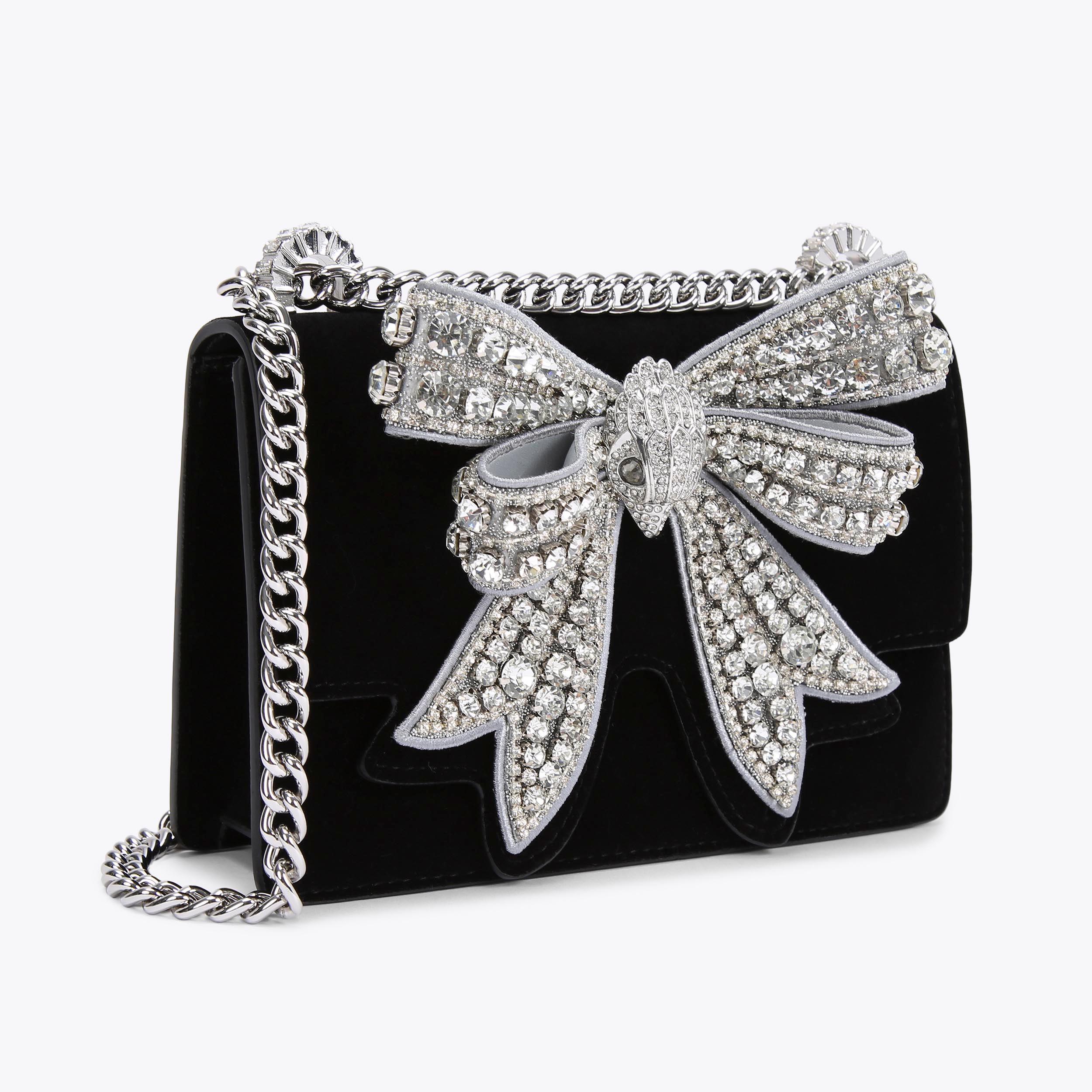 SHOREDITCH SM CROSS BODY Black Velvet Cross Body Bow Bag by KURT GEIGER