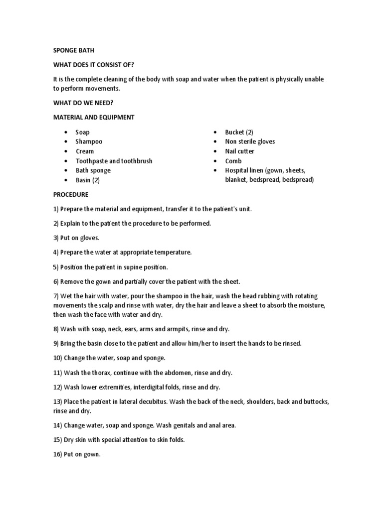Sponge bath process PDF