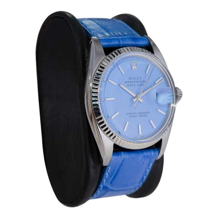 Rolex Steel Oyster Perpetual Datejust with Exceptional Custom Blue Dial
