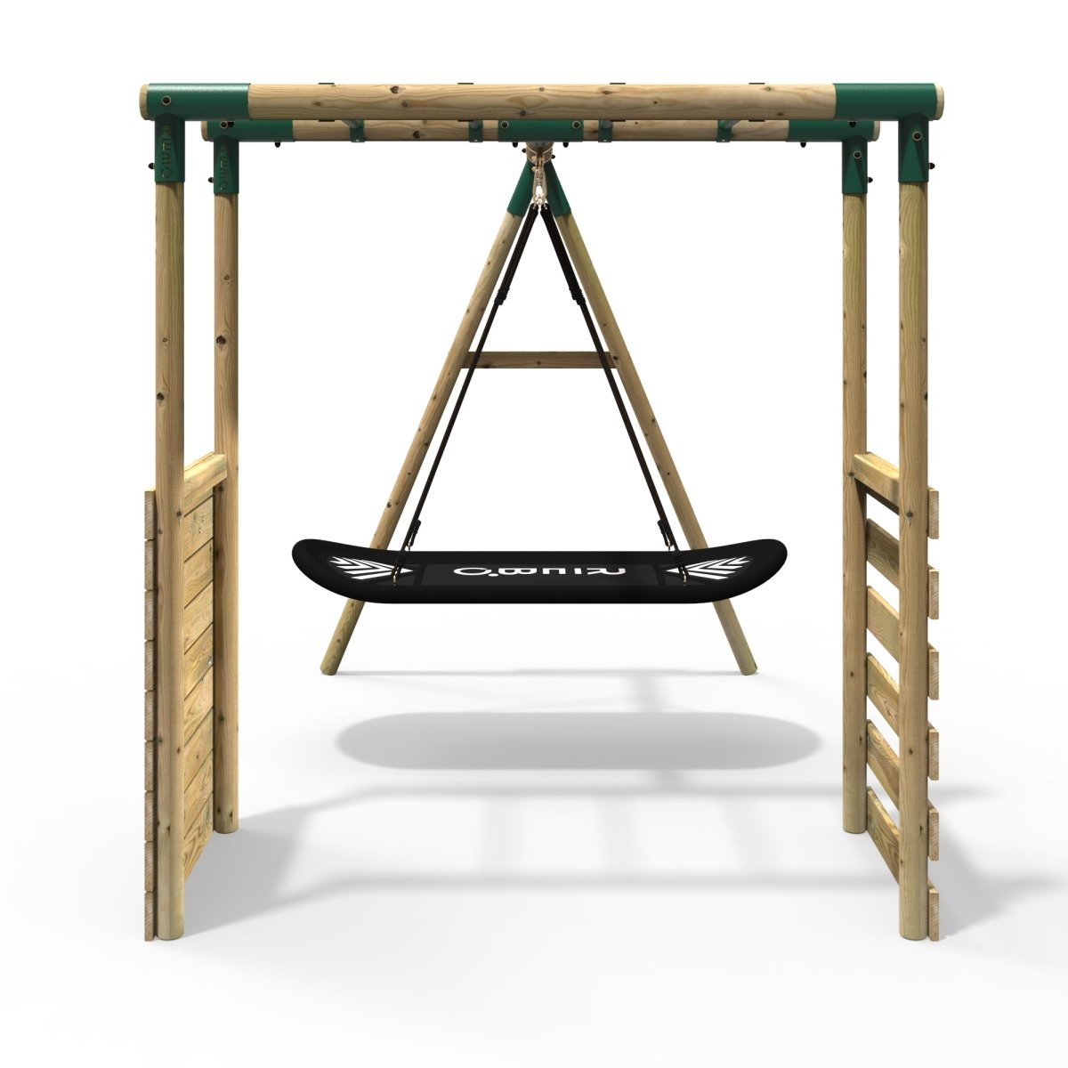 Rebo Wooden Garden Swing Set with Monkey Bars Boat Green