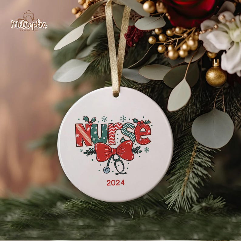 Nurse Coquette Christmas Ornament, Christmas Nurse Coquette Bow