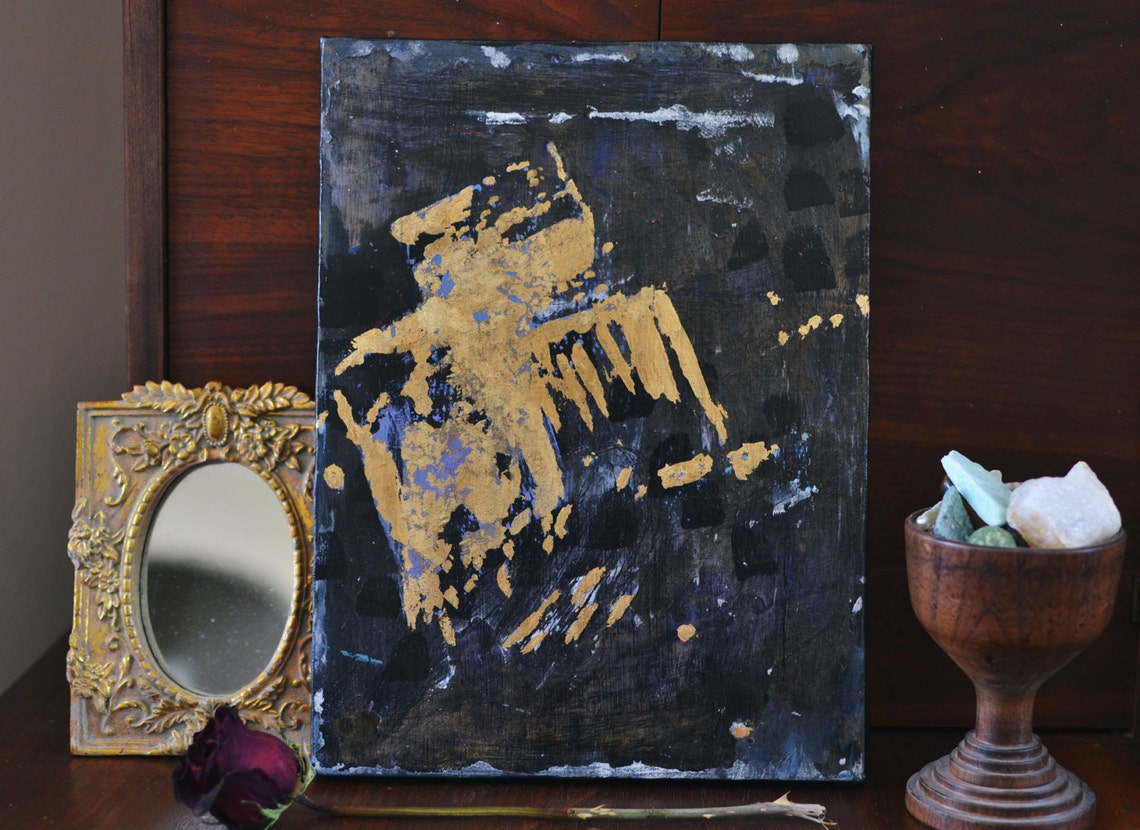 Pepper and Gold 9x12 Inch Canvas Gold & Black Absract Metal Etsy