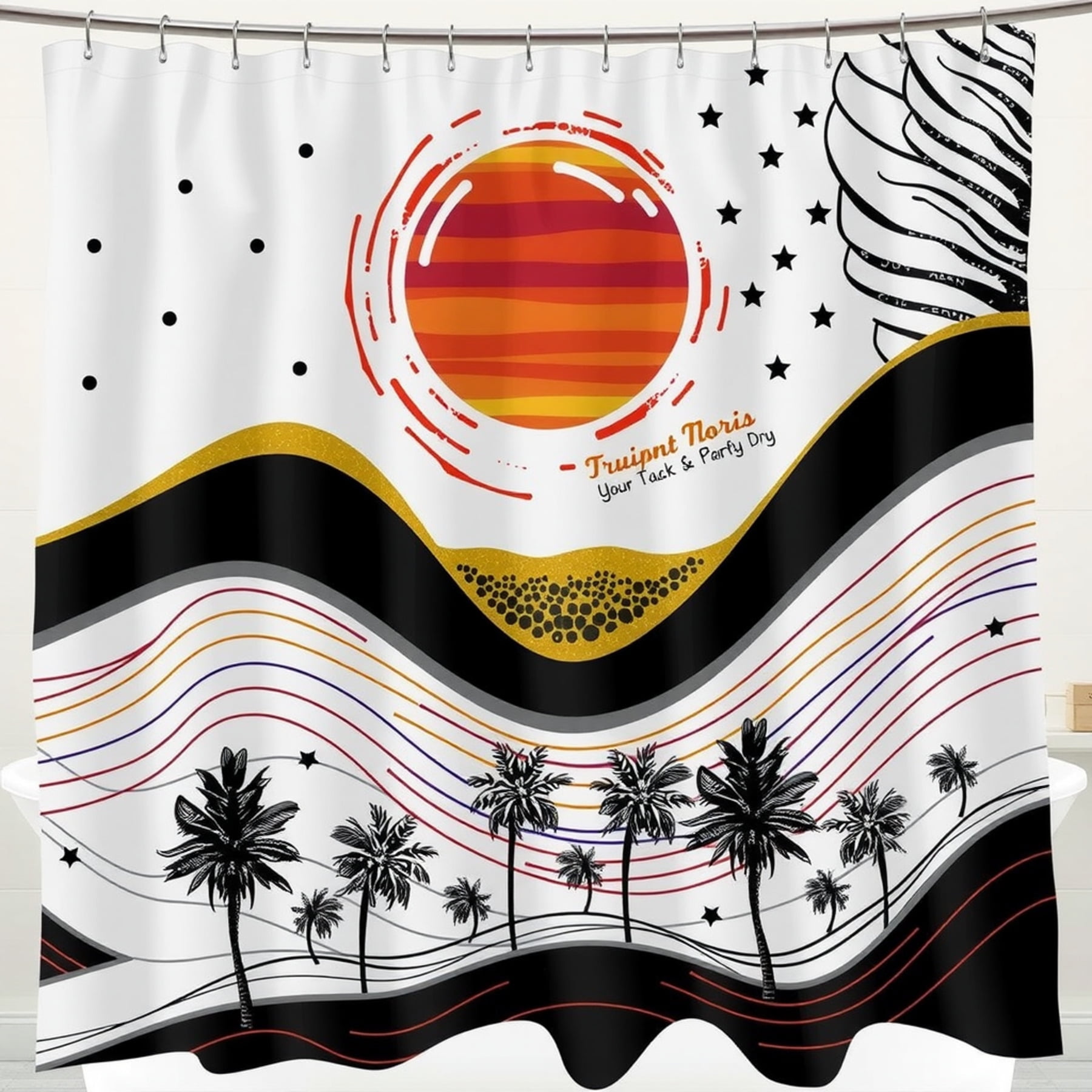 Colorful Floral Shower Curtain Bright Pink Yellow & White Flowers on