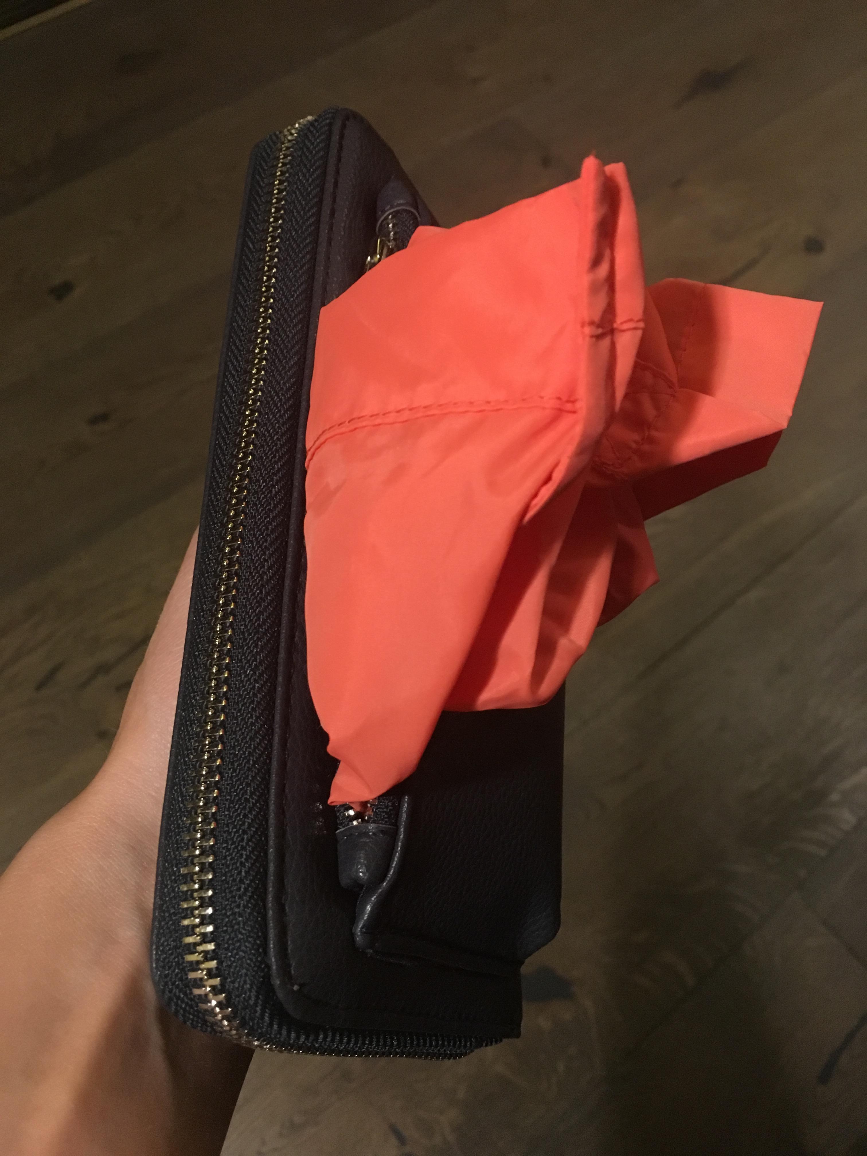 This wallet is made of vegan leather and has a shopping bag hidden