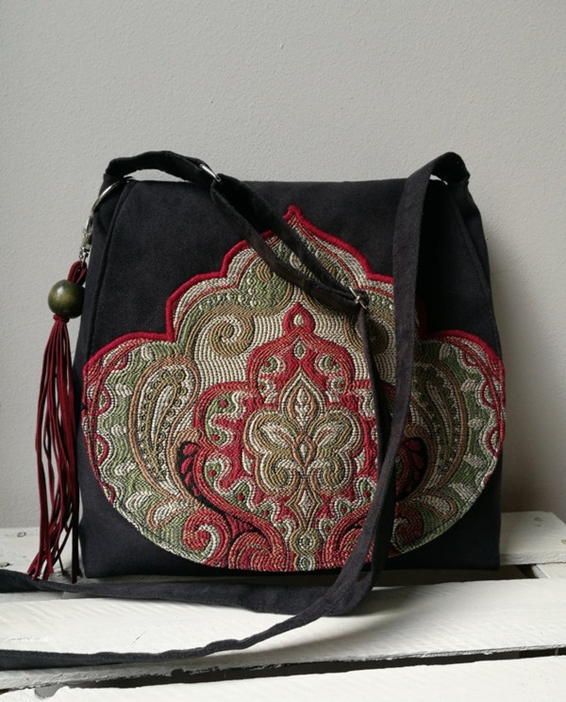Black oriental bag Vegan boho bag Boho messenger bag Hippie Etsy