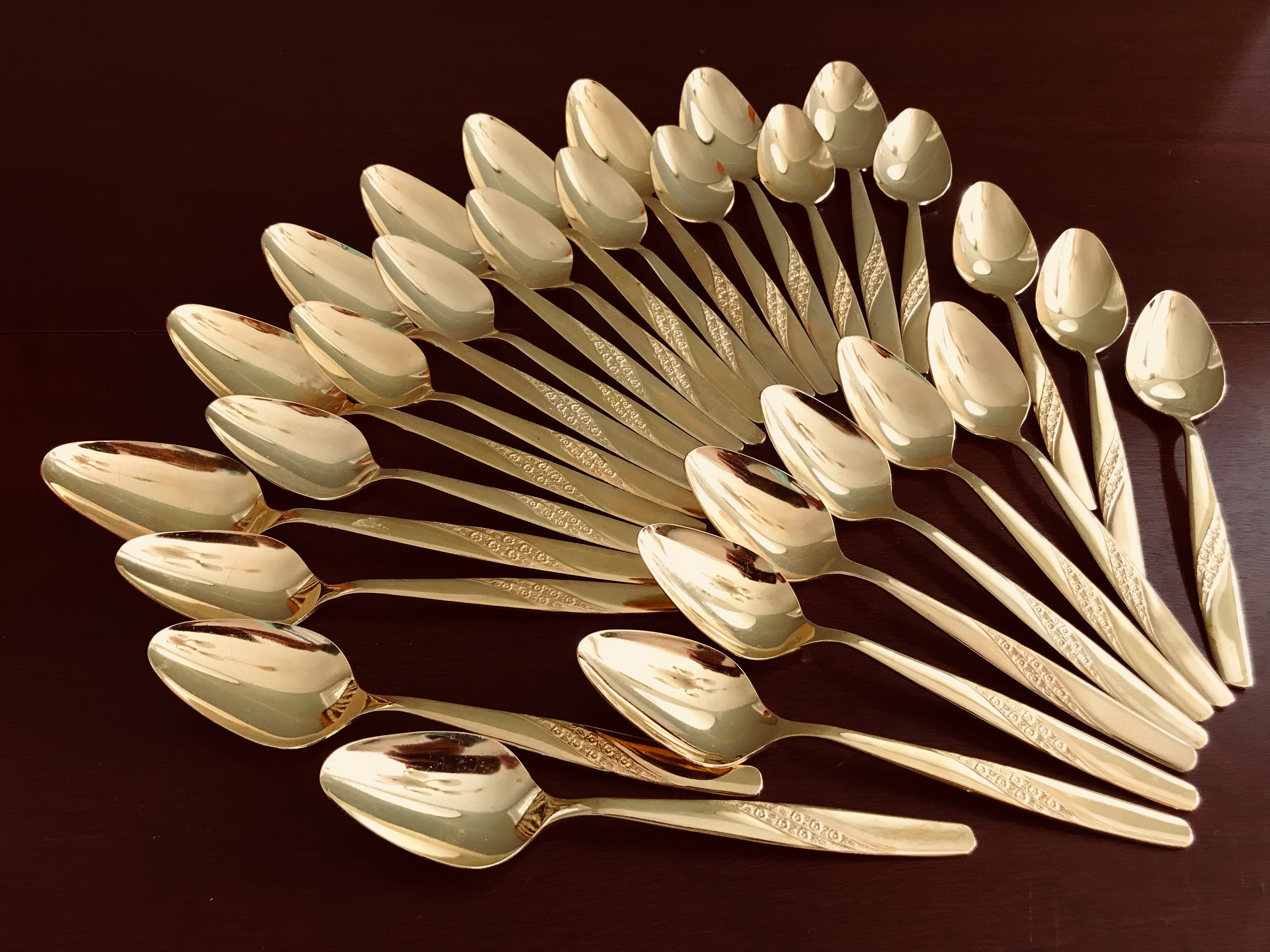 Gold Flatware set with silverware chest, service for 8, serving pieces