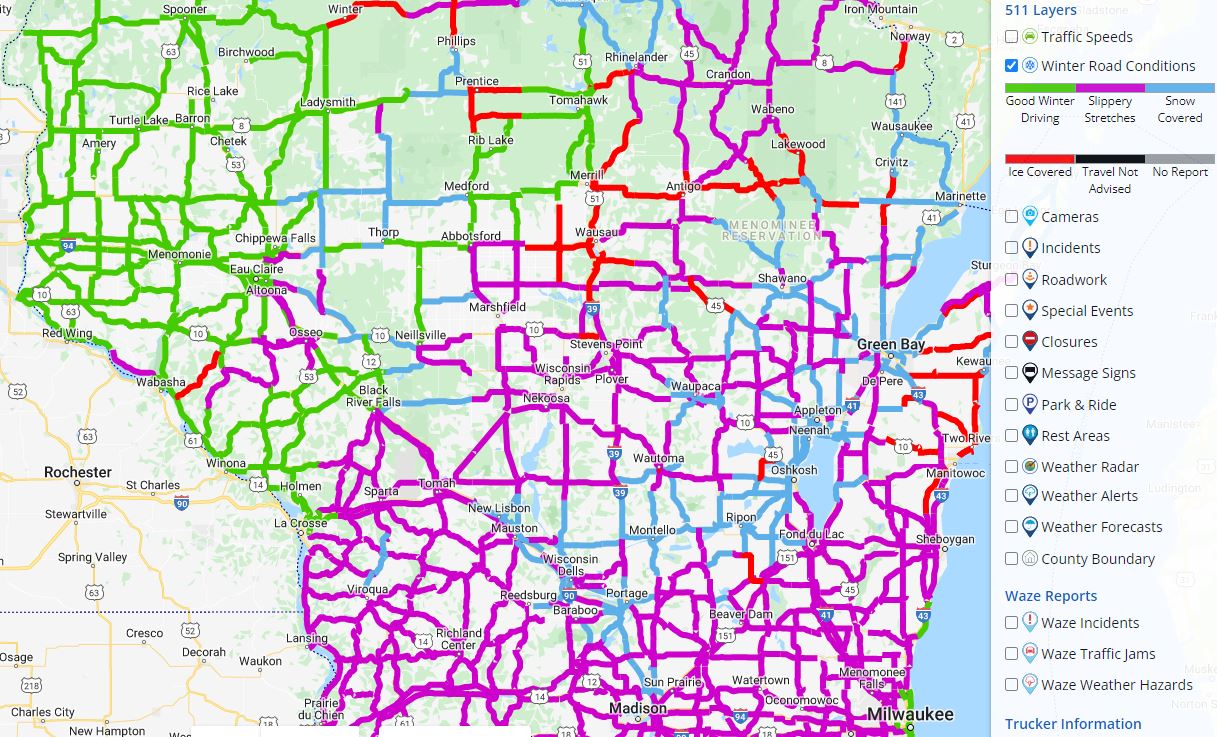 WisDOT Southeast Region on Twitter "RT WisconsinDOT Current road Road Conditions In Green Bay Wisconsin Select radar or road weather from layers. View the real time traffic map with travel times, traffic accident details, traffic cameras and other road conditions. Choose from several local traffic webcams across green bay, wi. 23, 2018 at 2:52 pm pdt. Click map for incident details. Green bay, wi road conditions and traffic updates with live interactive map including flow,. Road Conditions In Green Bay Wisconsin.