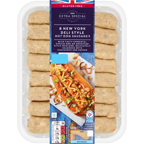ASDA Extra Special 8 New York Deli Style Hot Dog Sausages (640g