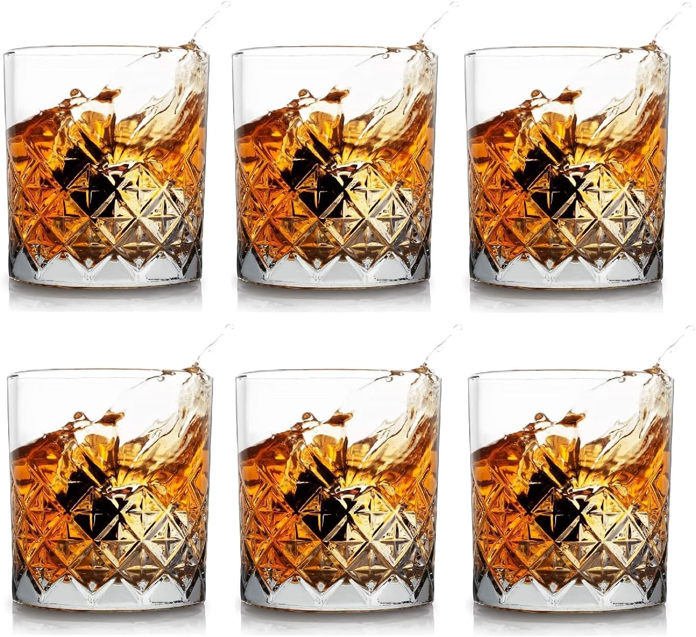 Diamond Glass Set of 6 European Crystal Whiskey Glasses