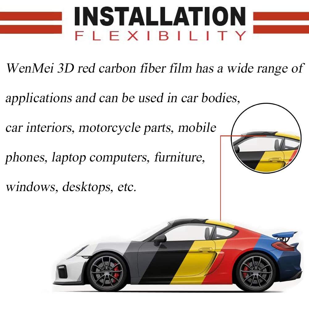 Wenmei Red Carbon Fiber Car Wrap Vinyl Roll 3D Carbon Fiber Vinyl Car
