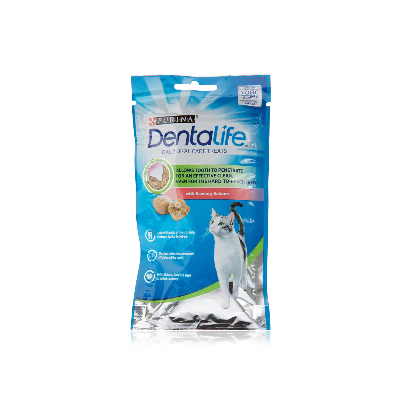 Purina DentaLife Cat Dental Treats, Savory Salmon Flavor, 1.8 oz. Pouch Purina Dental Life Cat Dentalife dental treats for cats are specially designed to help the tooth penetrate the treat, surrounding all sides of the tooth to help reduce. Purina dentalife cat treats made with. Scientifically designed with a crunchy and porous texture,. Each healthy cat treat for teeth is loaded with added calcium and taurine, plus added probiotics for cats to support your furry. Purina Dental Life Cat.