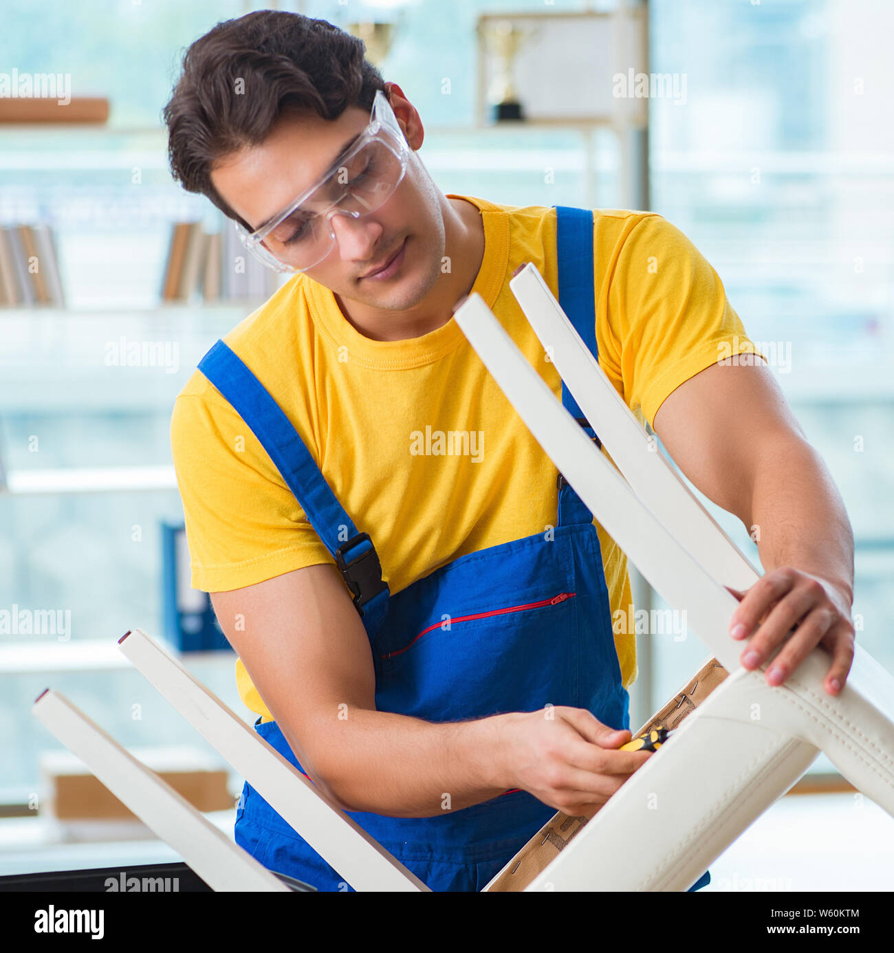 The furniture repairman working on repairing the chair Stock Photo Alamy