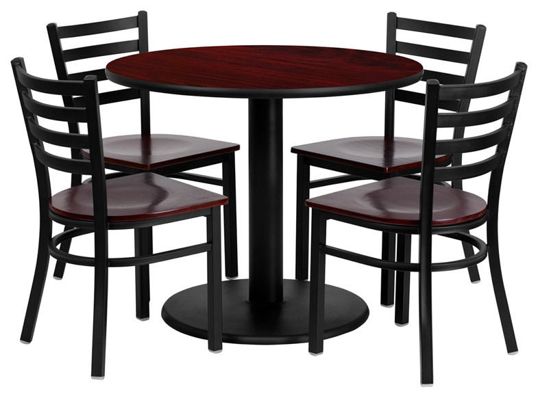 Dyersburg 5pcs Table Set Round 36" Mahogany Laminate, Mahogany Wood