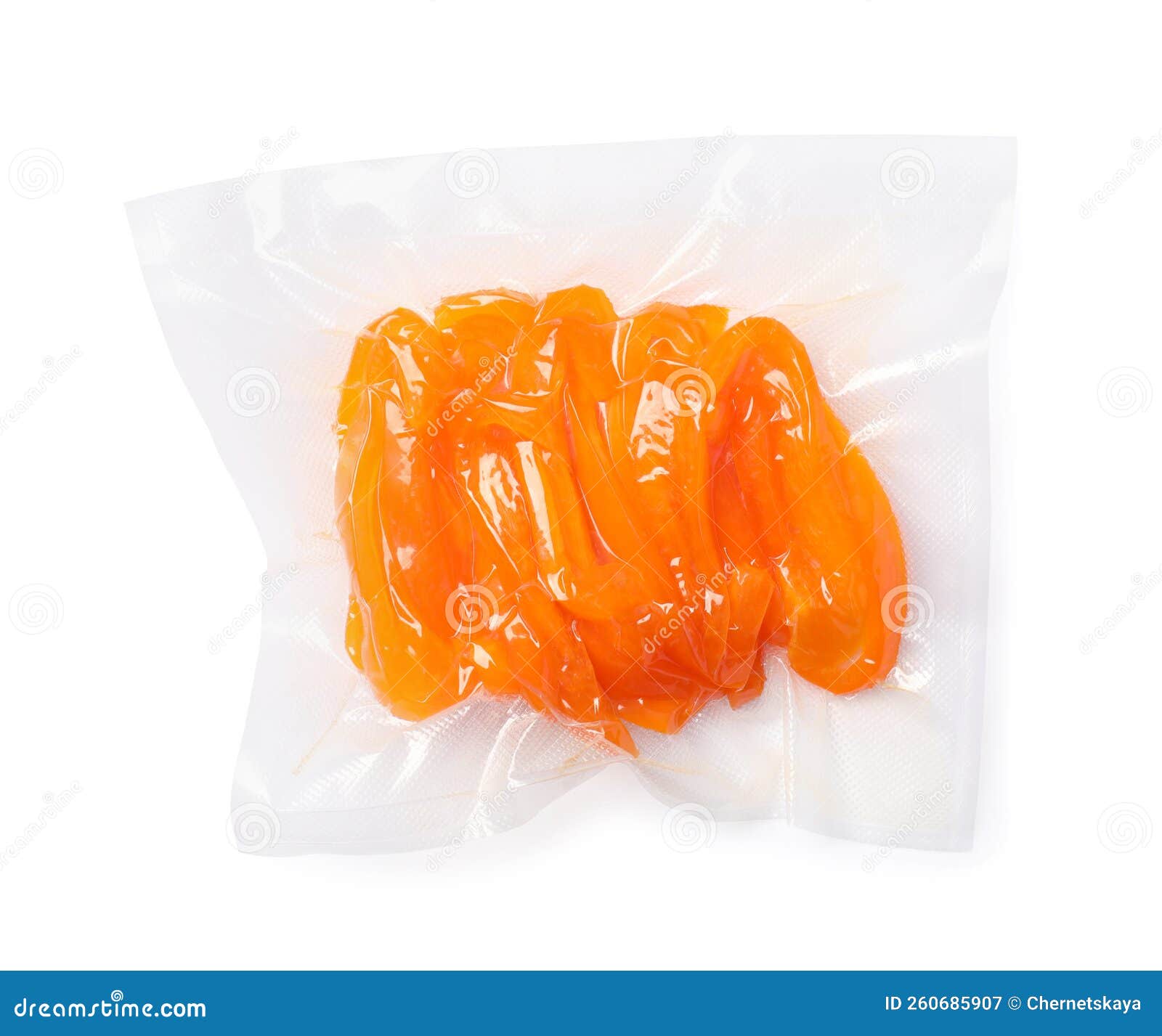 Vacuum Pack of Bell Pepper Isolated on White, Top View Stock Image