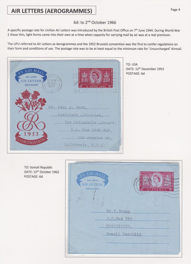British Postage Rates for Overseas Letters 1952 to 1971 ABPS