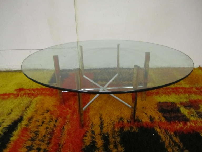 Milo Baughman Style Chrome Round Coffee Table Mid Century