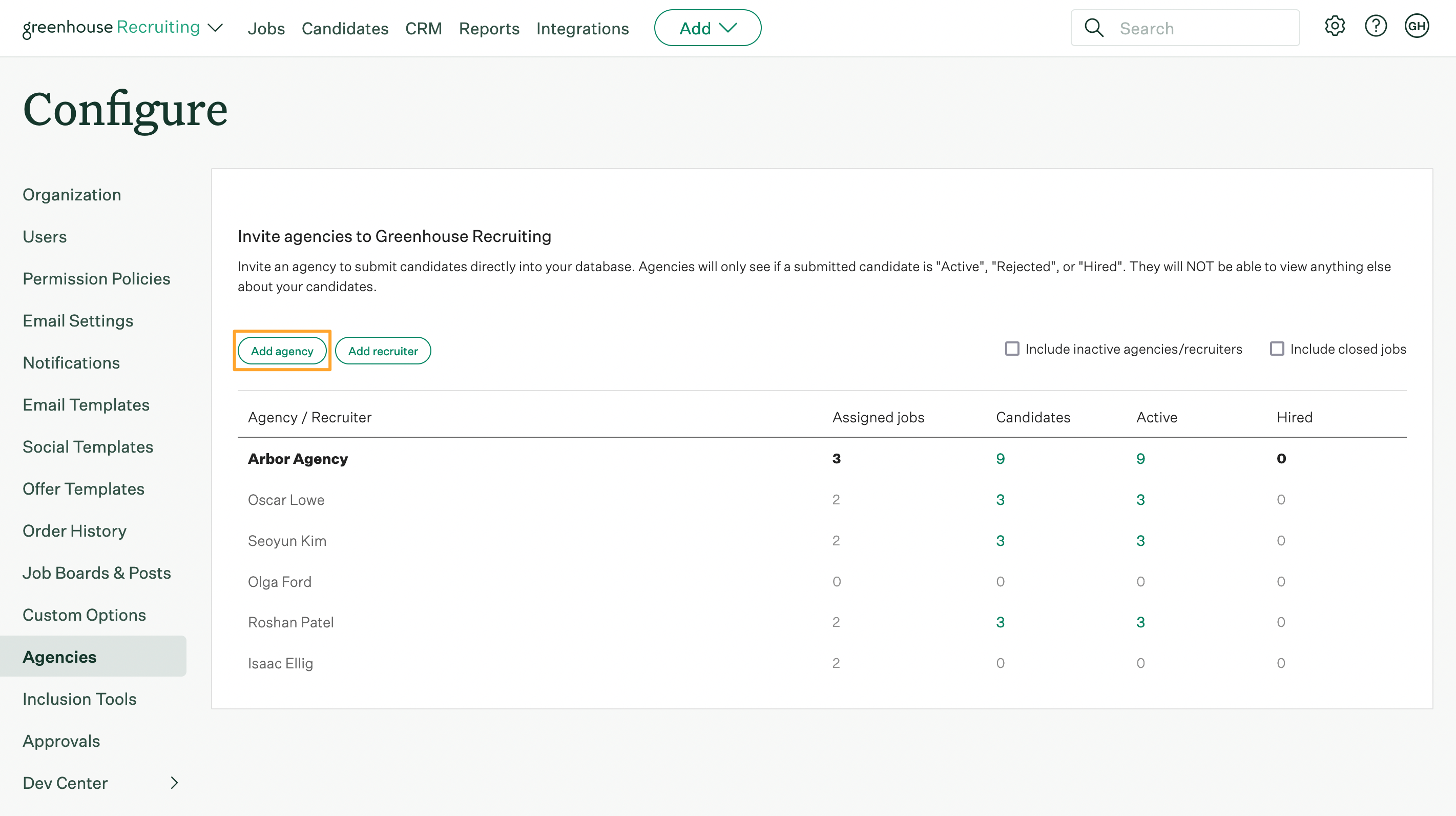 Configure agencies and agency recruiters Greenhouse Support
