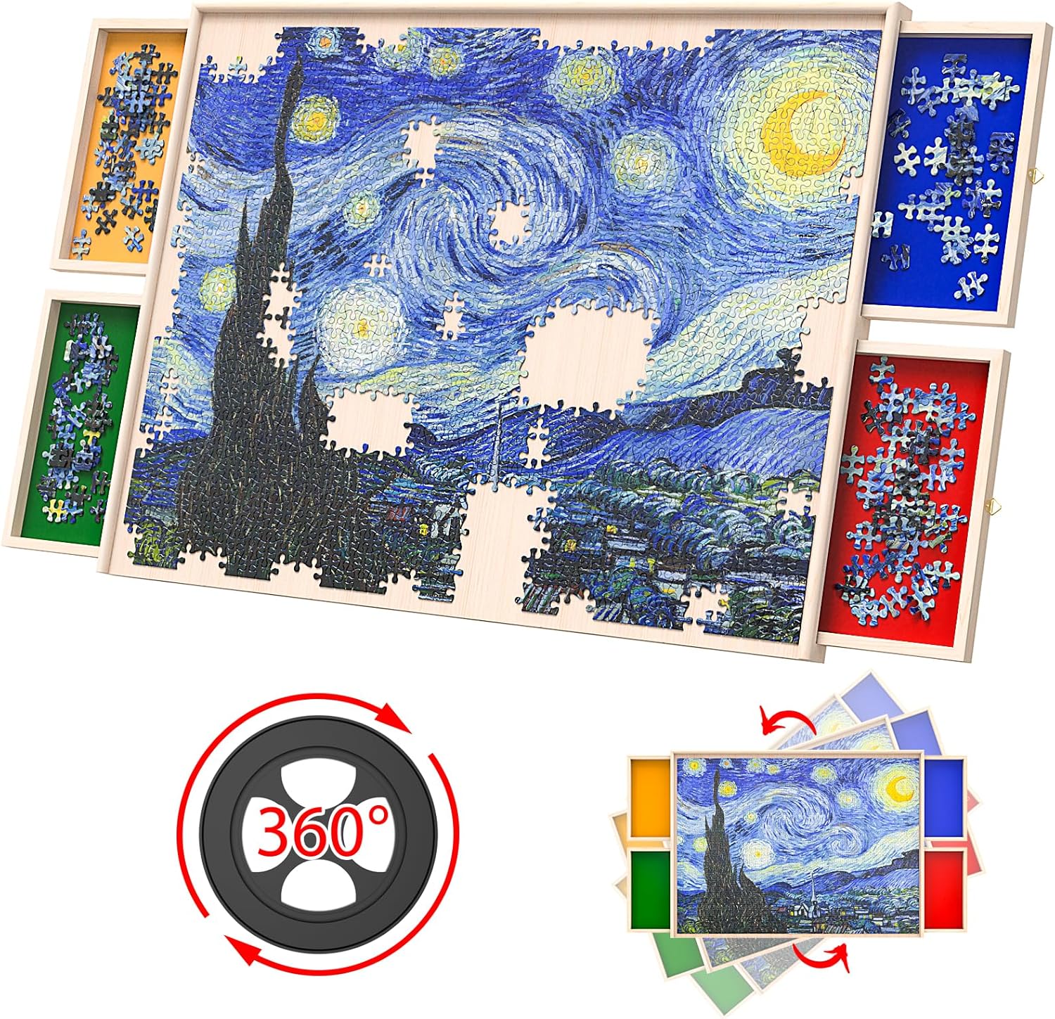 1000 Pieces Rotating Puzzle Table with Drawer and Lid, Lightweight