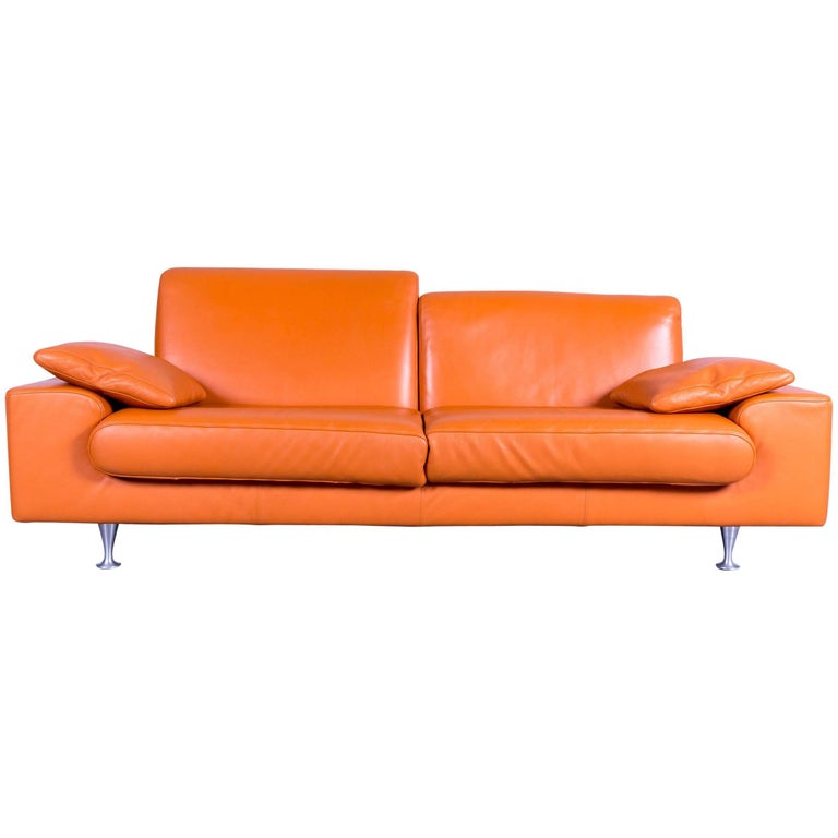 Laauser Designer Sofa Leather Orange ThreeSeat Couch at 1stDibs