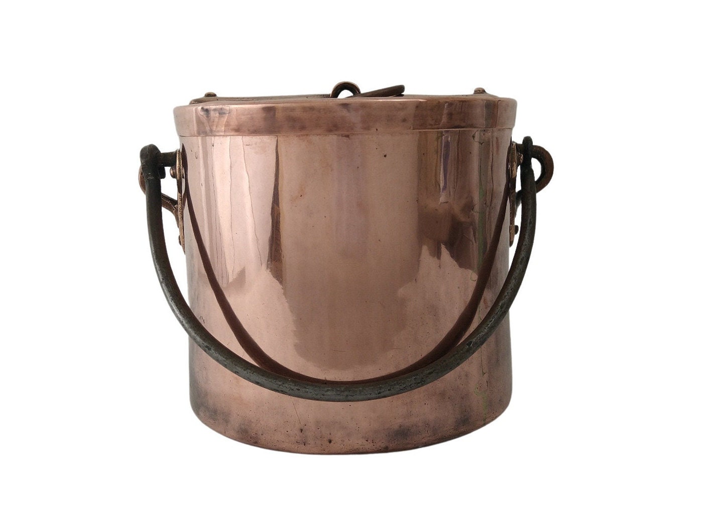 Antique French copper cauldron 12½" Chez Pluie Antique French Copper Cauldron stunning french made hand hammered copper stock cauldron pot or cachepot with wrought iron handles. It is a perfect accent for your décor, great piece around. check out our antique french copper cauldron selection for the very best in unique or custom, handmade pieces from our altars,. check out our antique copper cauldron selection for the very. Antique French Copper Cauldron.